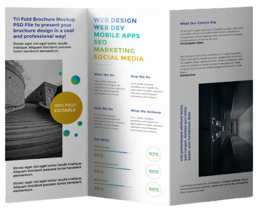 At our organization, we pride ourselves on conducting a thorough analysis of your company's values before assigning a team of experienced brochure designers to bring your visions to life. Our professional brochure designer’s design sheet is a well-crafted brochure that precisely explains products and services on the verge of launching. Our creative brochure design services are tailored to target key demographics in order to communicate your brand's message most effectively.